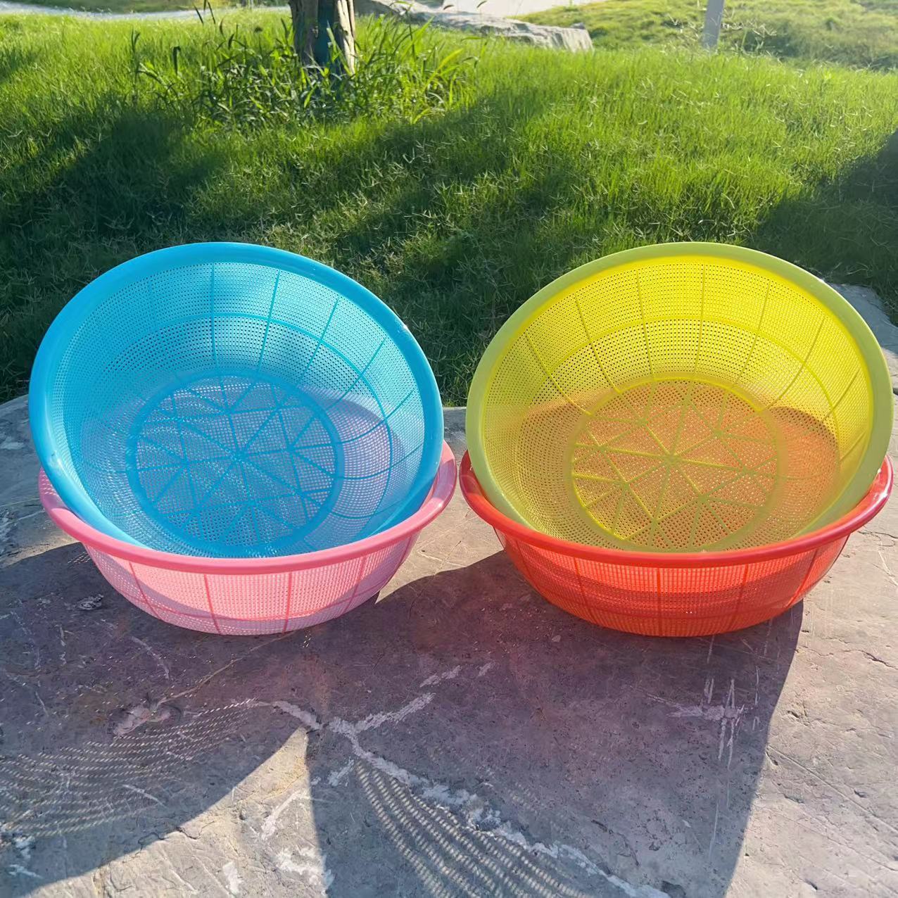 2元店货源加大加厚圆形塑料筐口径35洗菜筐洗水果筐厨房收纳筐