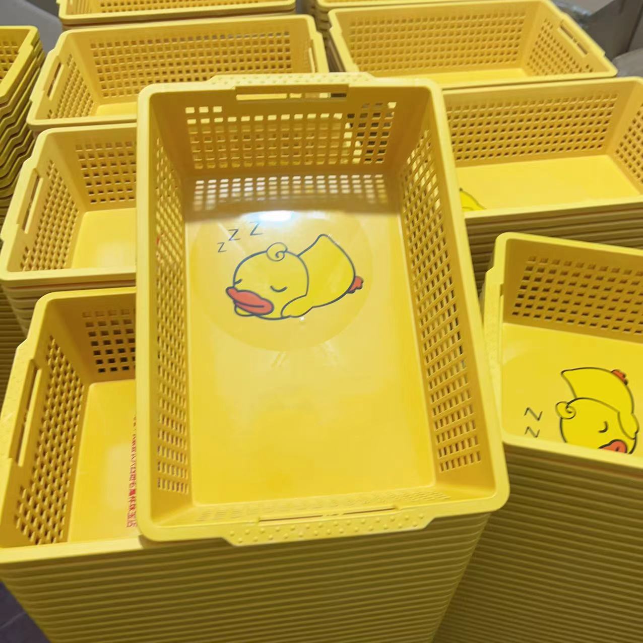 厂家直销加大加厚长方形收纳筐2811黄鸭长方框桌面收纳筐塑料筐