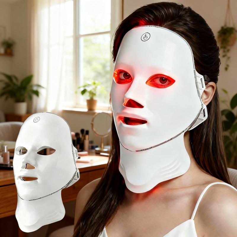 跨境带脖子无线面罩LED七色彩光面罩充电款家用触摸七色光面膜仪