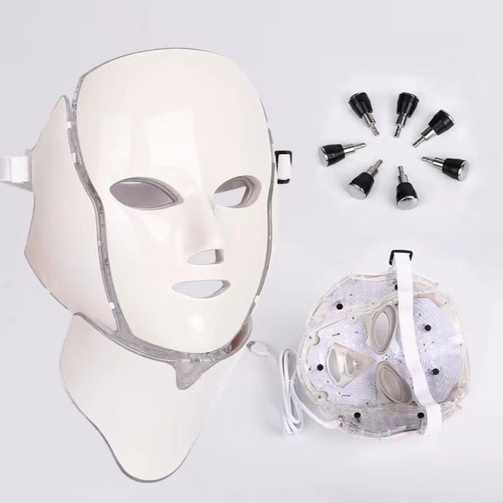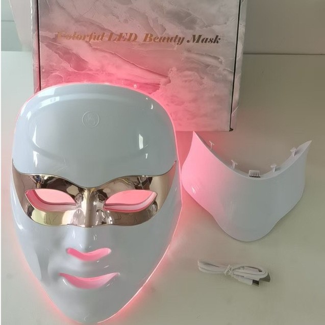 批发跨境热卖品硅胶面罩脸部脖颈美白祛痘面膜仪LED七色光嫩肤仪