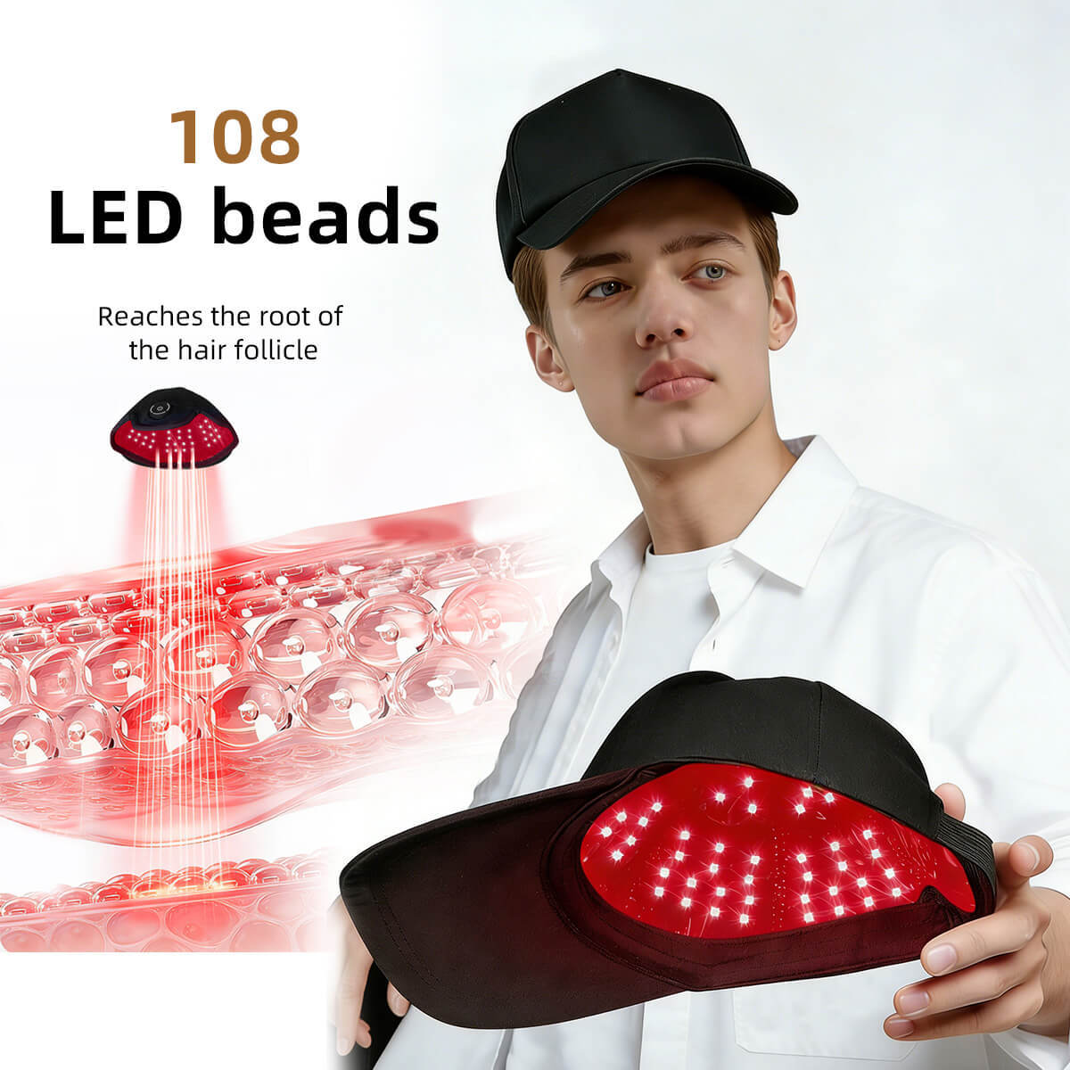 新品热销欧美生发帽激光帽子108颗660+850红光内置电池便携生发仪