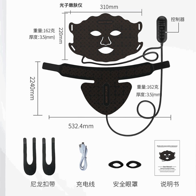跨境美颈仪 大排灯 LED美容仪红光 光谱仪美容面具硅胶美容光谱仪