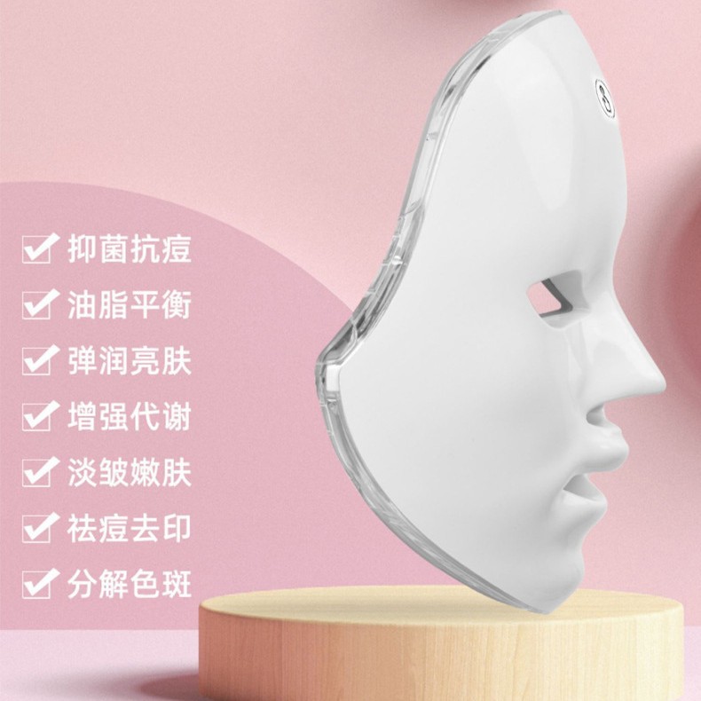 外贸新品美容面罩硅胶LED七色红光大排灯亲肤无味面部光子 嫩肤仪
