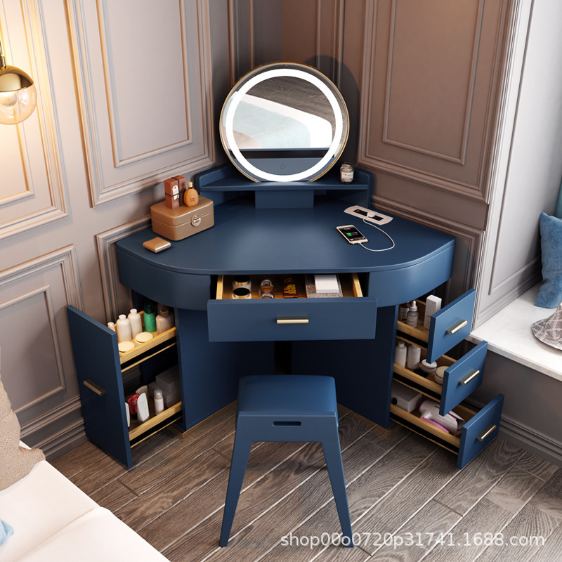 网红转角轻奢三角形梳妆台卧室小户型收纳柜一体现代简约化妆台桌