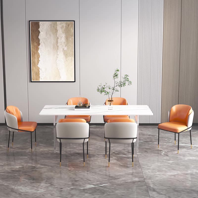 北欧简约大理石餐桌 长方形铁艺白色方桌椅组合小户型吃饭桌