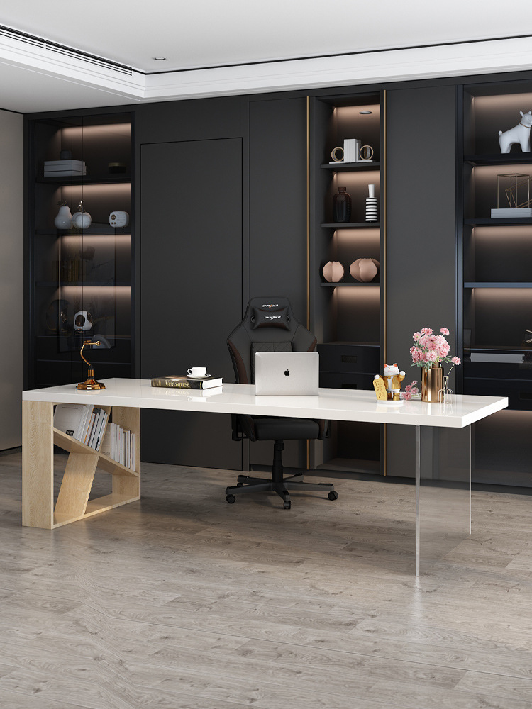 轻奢亚克力悬空创意 实木北欧书桌工作台办公桌 电脑桌设计师桌子