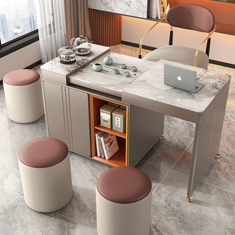 北欧风客厅带收纳实木茶桌 轻奢家用接待功茶桌椅组合办公室茶台