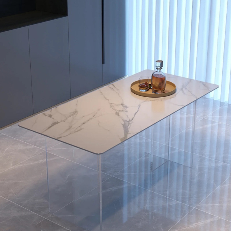 意式现代简约轻奢岩板餐桌亚克力悬浮桌腿家用长方形吃饭桌子岛台