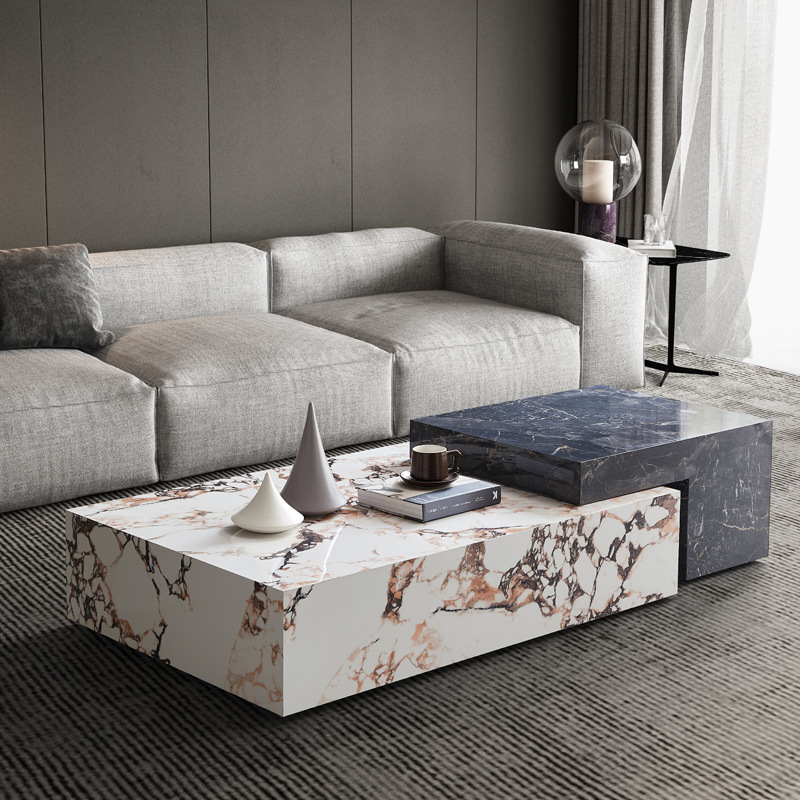 长方形岩板茶桌客厅家用创意大师高级感轻奢茶几边几组合意式极简