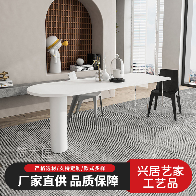 亚克力悬浮餐桌岩板岛台餐桌椅组合轻奢小户型现代透明桌子侘寂风