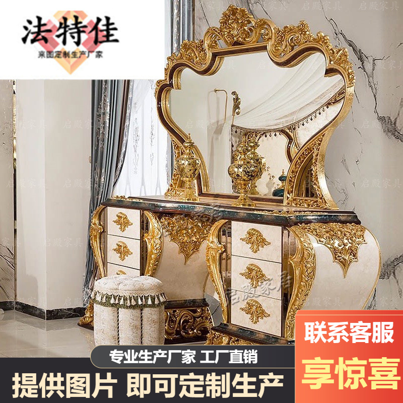 欧式公主梳妆台实木雕花化妆台卧室高端法式公主梳妆台镜子化妆镜
