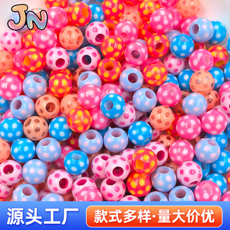 大孔珠混色马卡龙波点条纹爱心字母儿童diy手工串珠手机包包材料