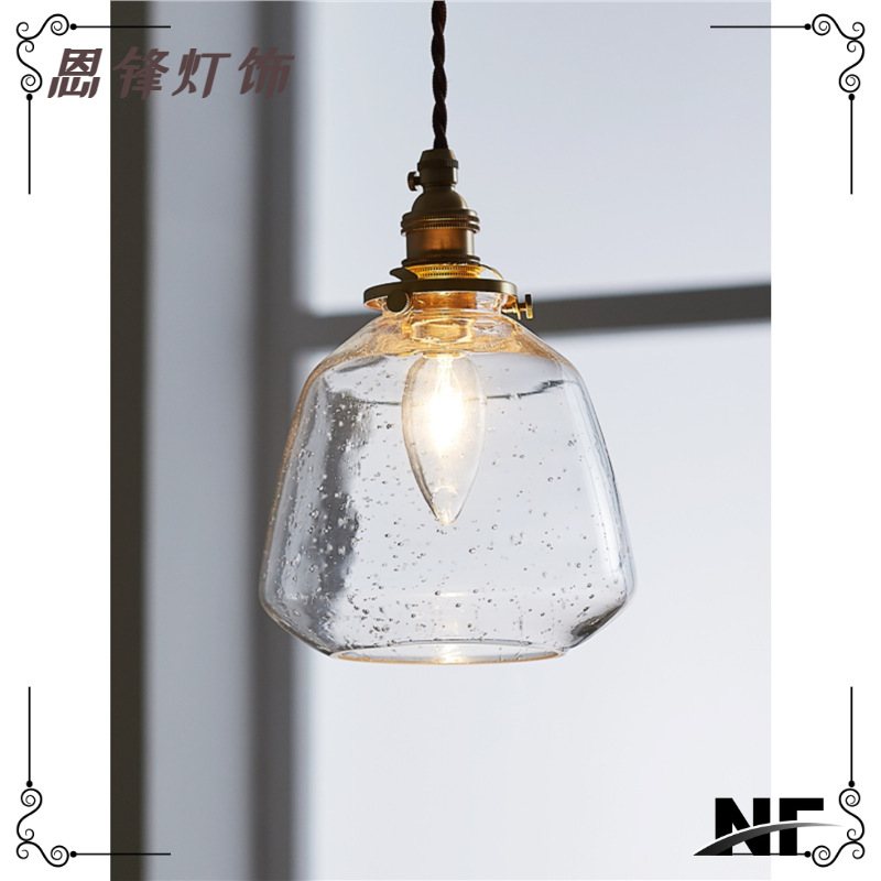 美式复古黄铜裂纹玻璃吊灯卧室民宿床头温馨复古怀旧小吊灯