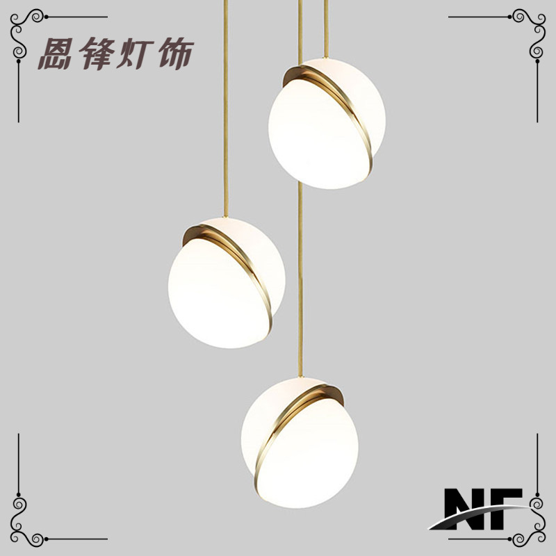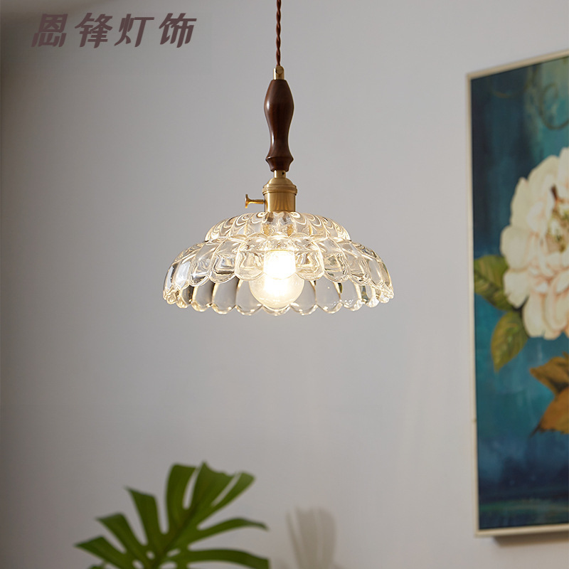跨境北欧日式简约吊灯餐厅吧台床头小吊灯胡桃木黄铜单头玻璃吊灯