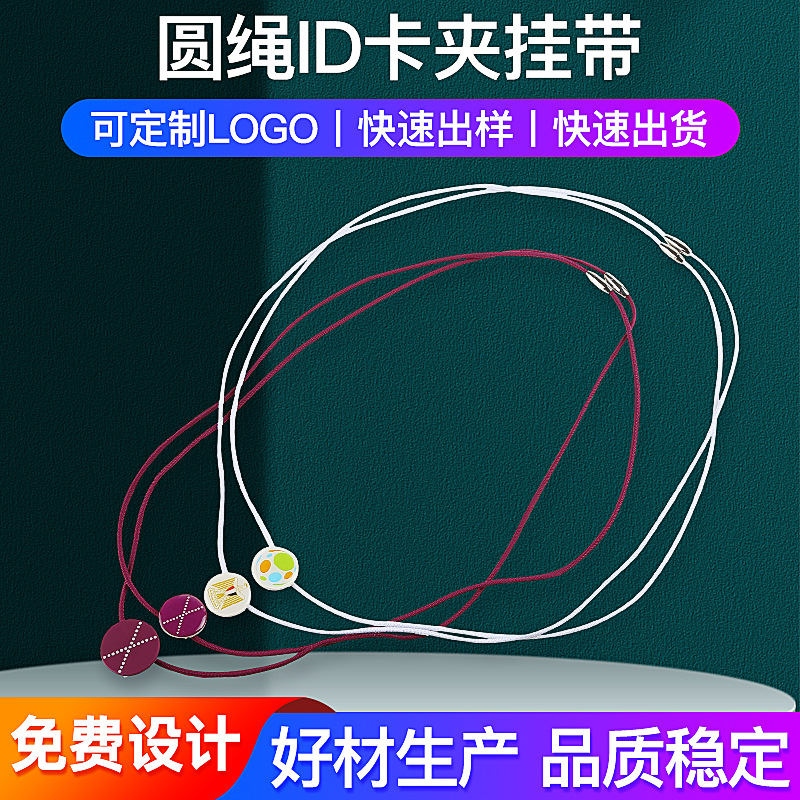 厂家定 制圆绳挂带ID卡夹挂带卡片挂绳松紧带圆绳圆扣夹绑带批发