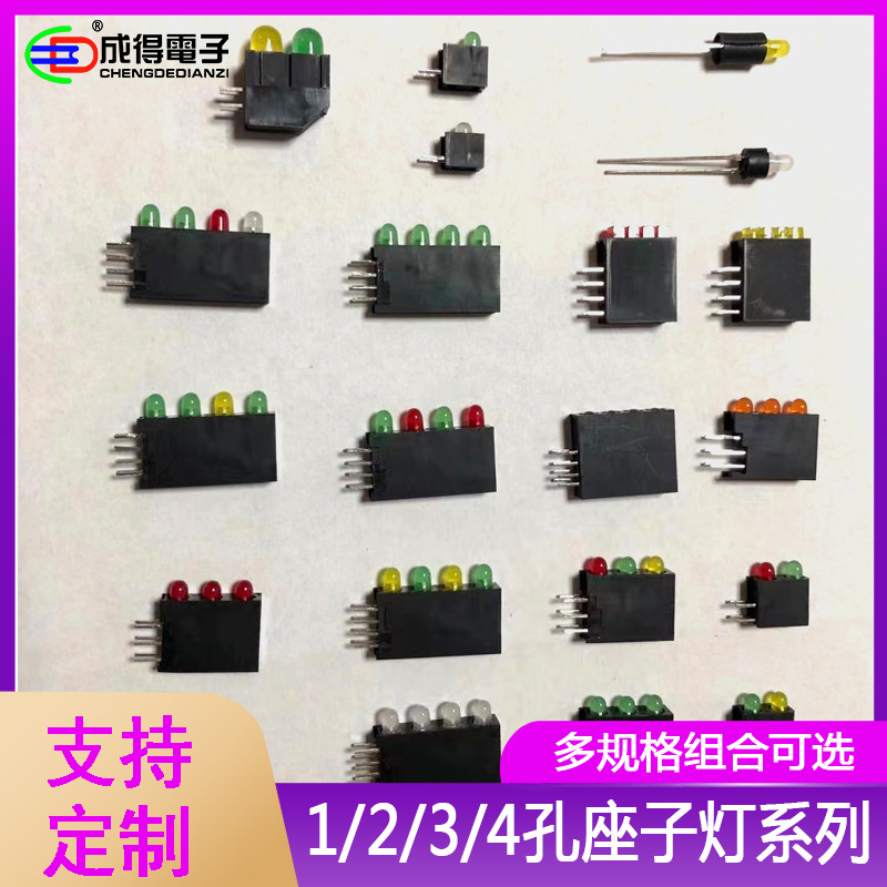 3MM红黄绿蓝白带黑色塑料灯座LED灯柱单/双孔F3四孔座子电源指示
