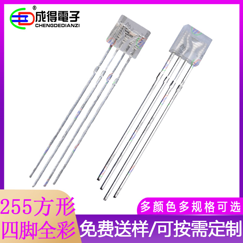 方形扁头255七彩共阳RGB四脚全彩高亮 LED红绿蓝共阴2.5*5*5RBG
