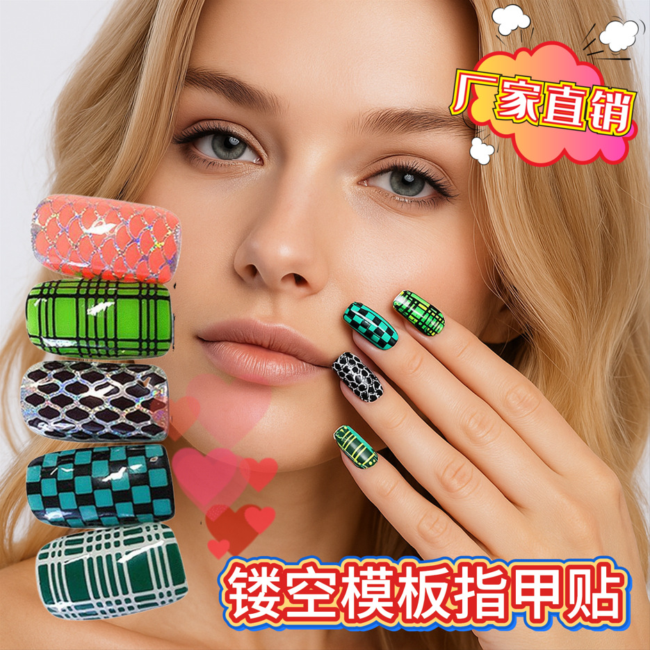 镂空镭射美甲模板装饰两用美甲贴纸DIY造型店指甲贴带背胶极光甲
