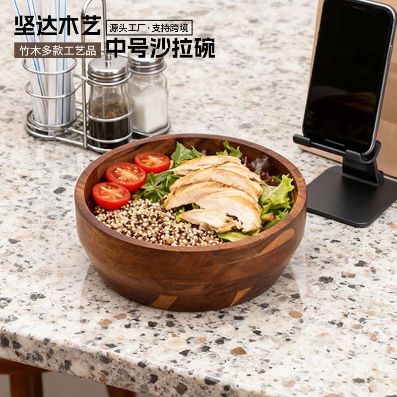 跨境相思木沙拉碗日式家用木质餐具防水中号沙拉碗汤碗儿童沙拉盘
