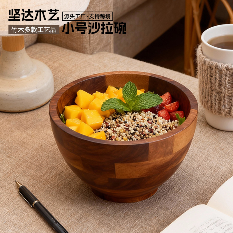 厂家批发相思木沙拉碗儿童餐碗木质防烫早餐碗野餐野炊素食餐碗
