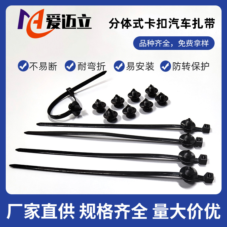 现货汽车电源线捆绑束线扎带电动车PE扎带自锁式汽车钣金孔扎带