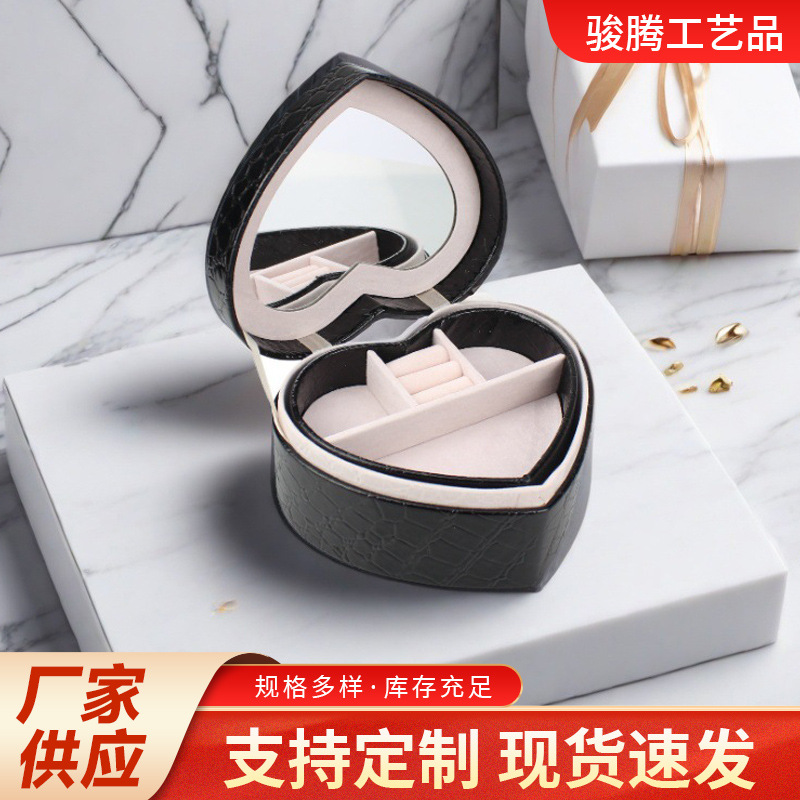 跨境简约皮革珠宝盒子多层心形旅行饰品包装盒耳钉耳环戒指饰品盒