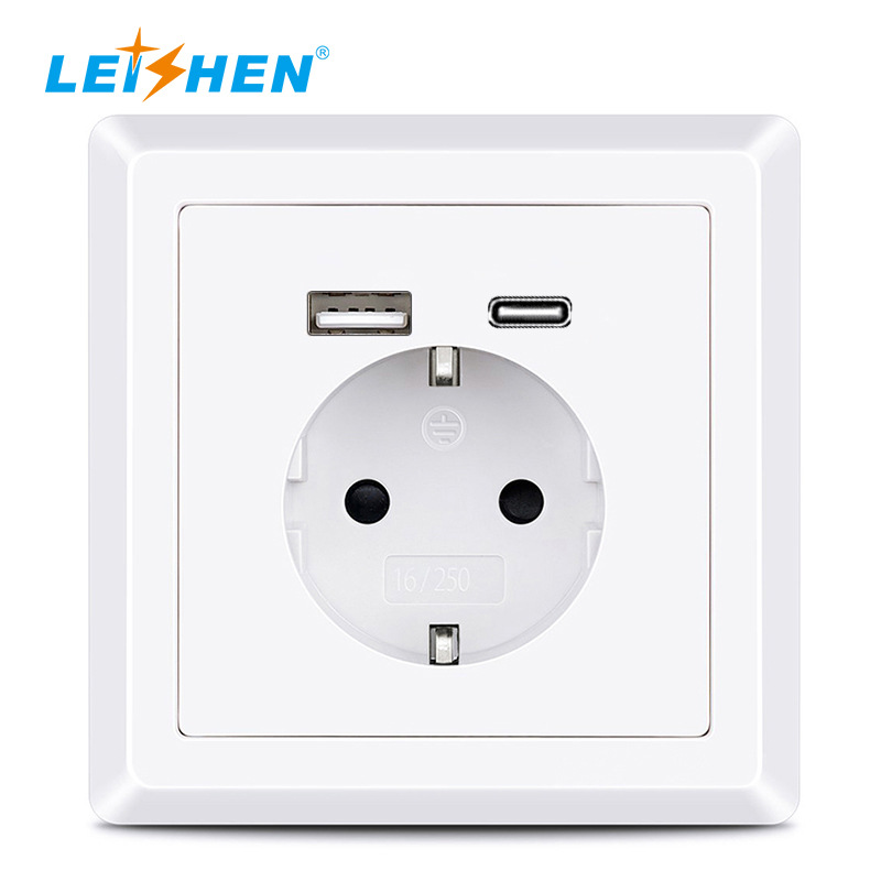 面板80型欧标TUV认证插座德式欧洲插座带usb欧式墙壁电源插座