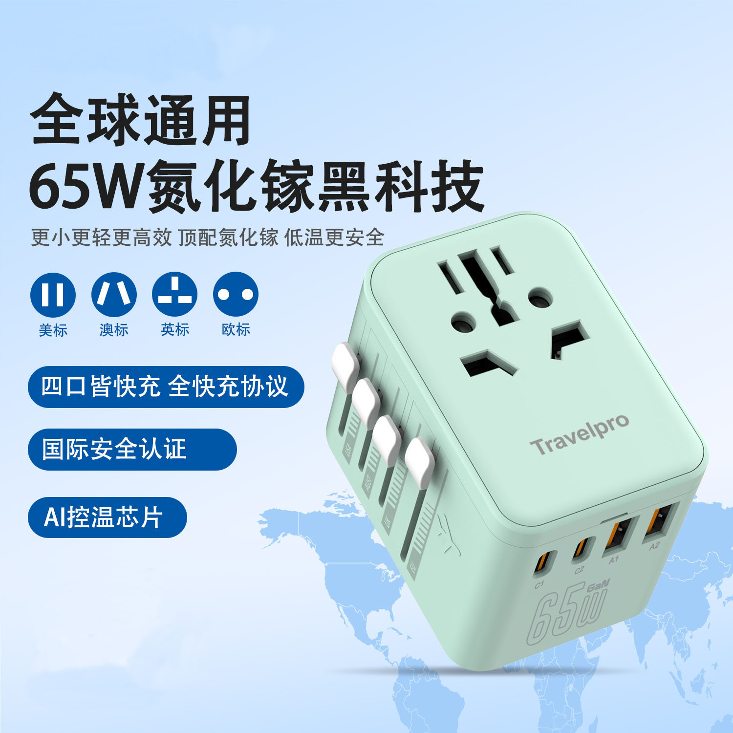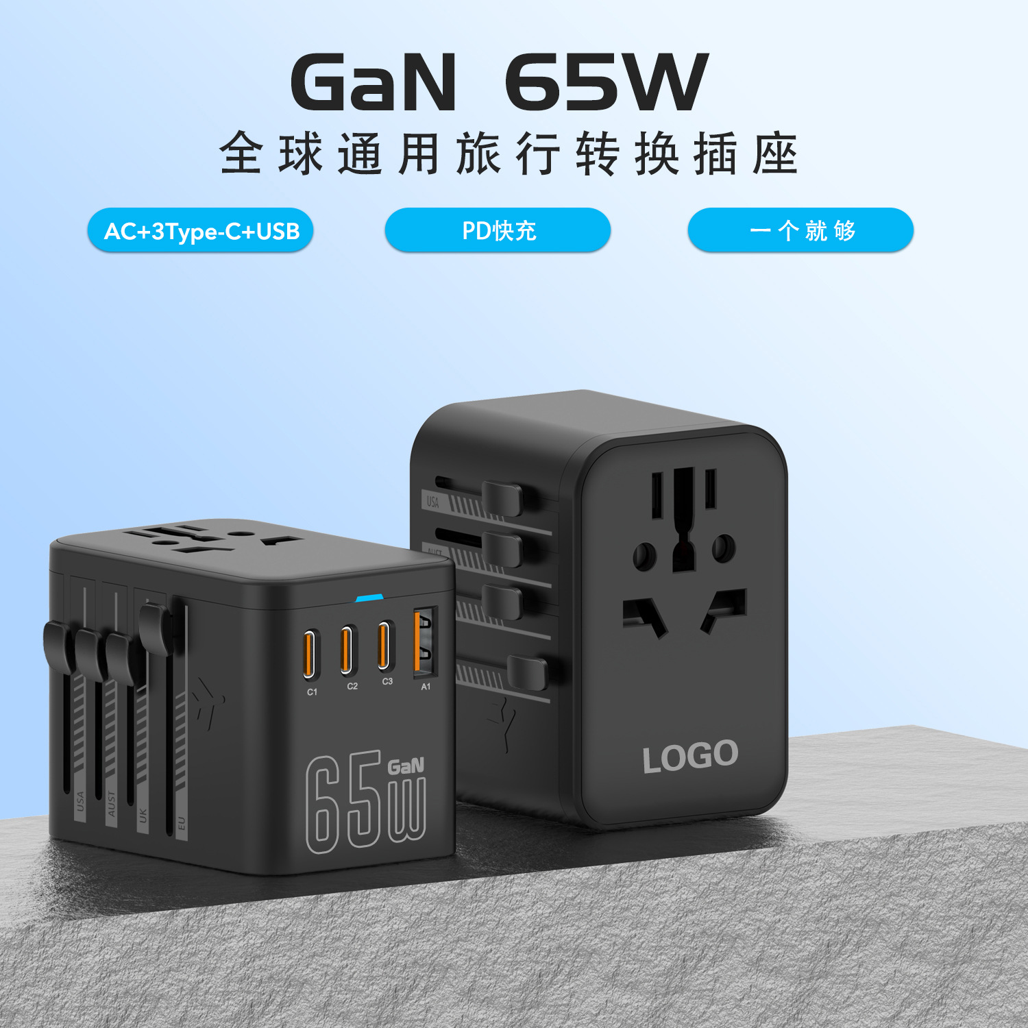 万能转换插头全球通用出国旅游便携式PD65W跨境电商热卖一转多电