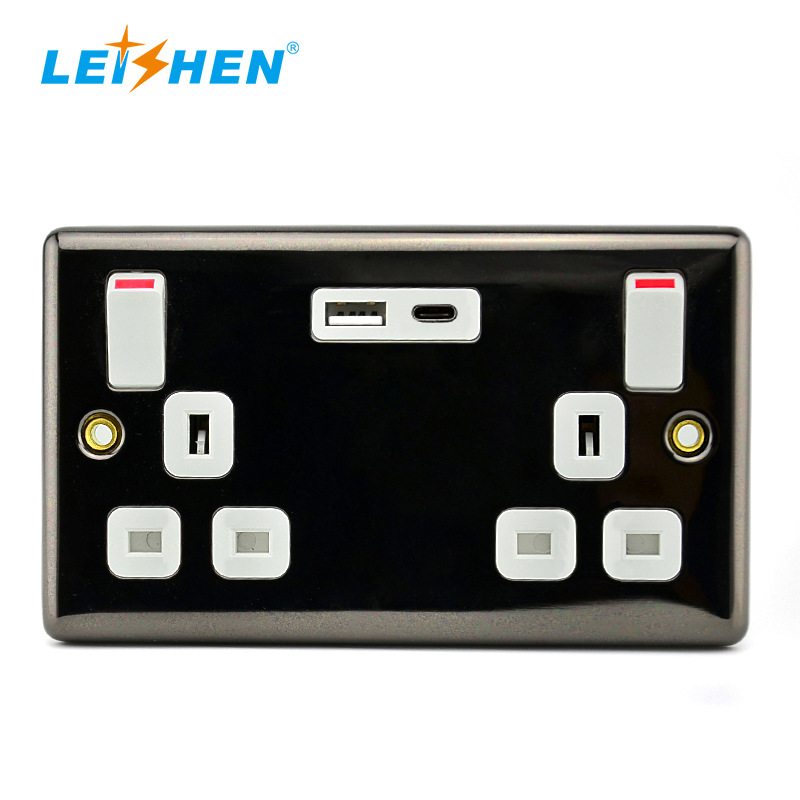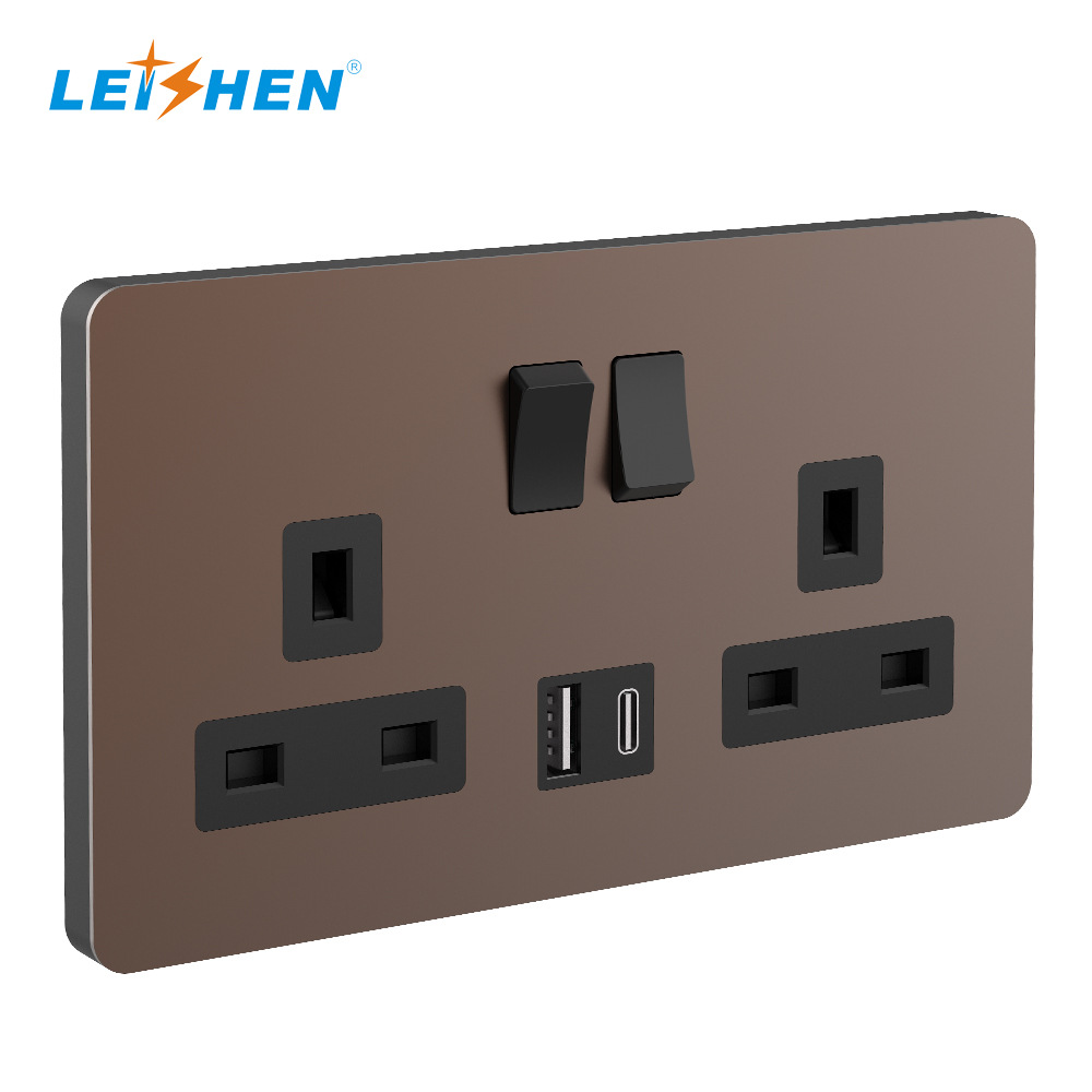 英国香港墙壁插座双开关双控双极金属面板墙壁USB充电插座带认证