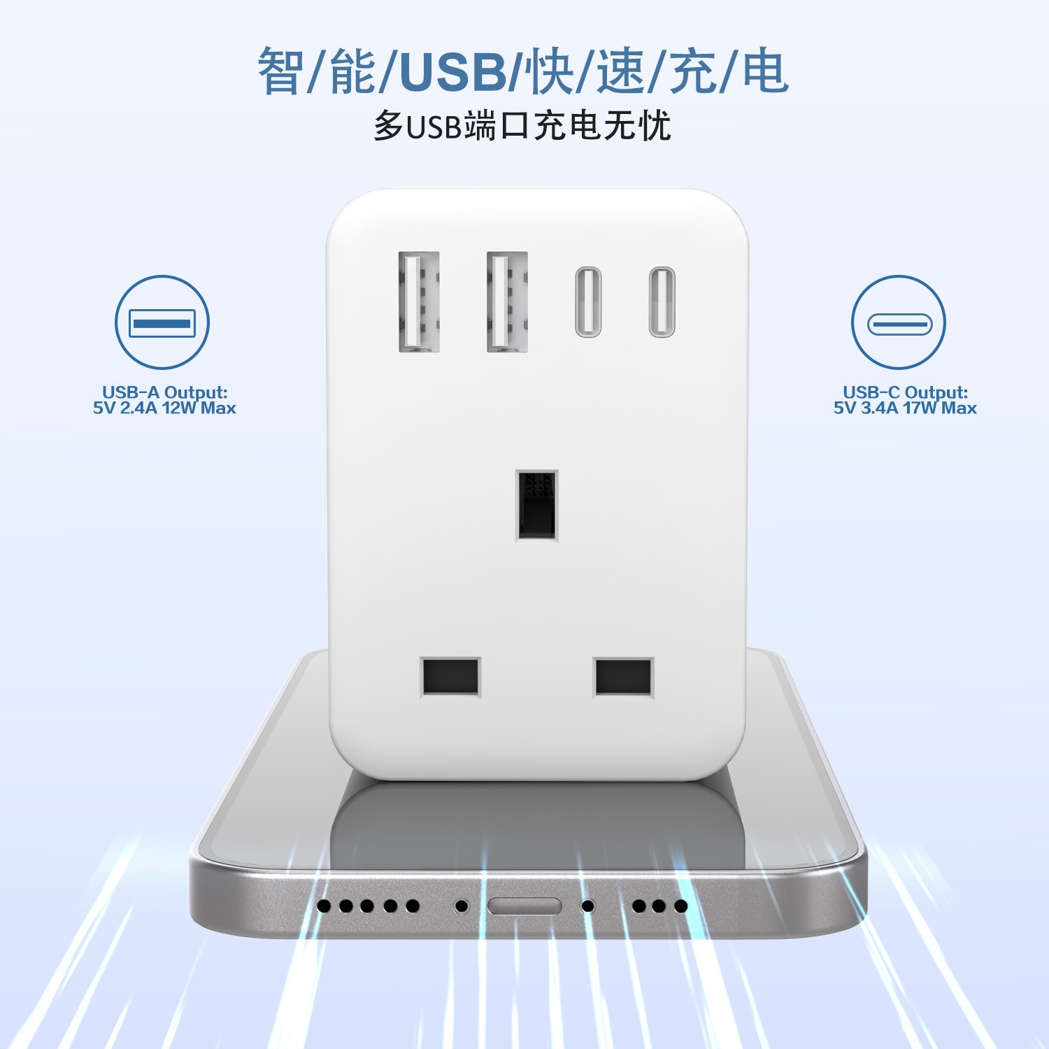 厂家直销跨境国际插座英规UKCA认证安全插座带USB充电电源适配墙