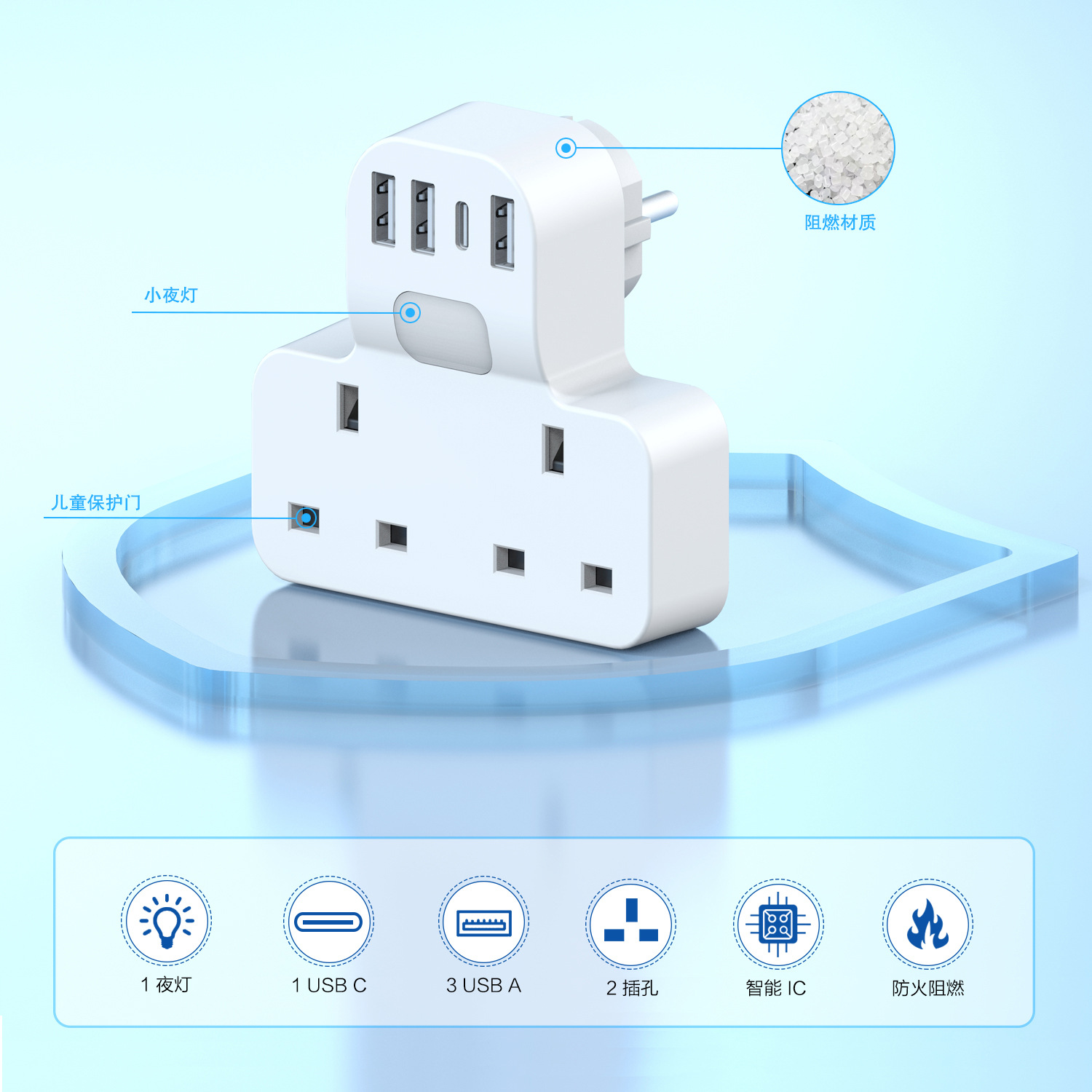 跨境电商新款专供英规转换插座家用usb插座转换排插带夜灯无线插