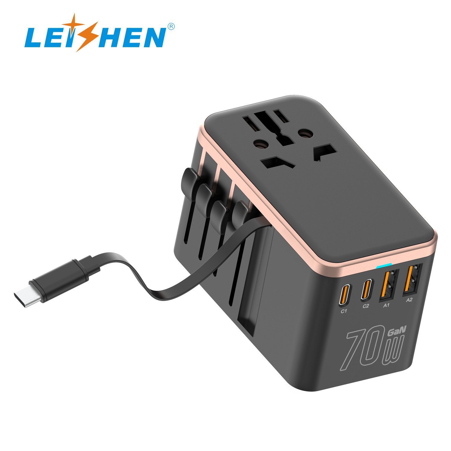 氮化镓70W带充电线手机充电转换插头万用国际旅行充电器全球通用