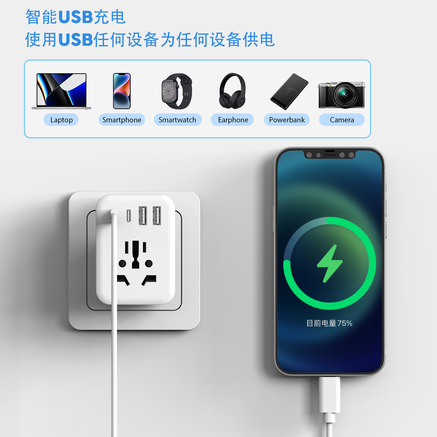 出国留学必备转换插头欧美澳日多国通用Type-C快充便携跨境电商批