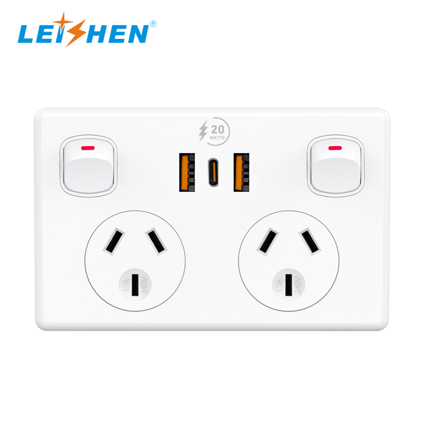 澳大利亚墙壁插座带USBtypec充电接口SAA认证澳标插座双开双插座