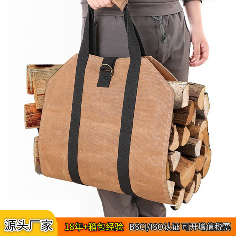 过蜡帆布柴火袋卡其色柴火袋 一片式帆布防污柴火袋