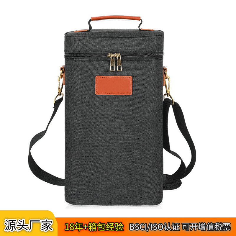 亚马逊保温酒袋多功能便携单肩保温袋2瓶装黑色牛津布红酒包
