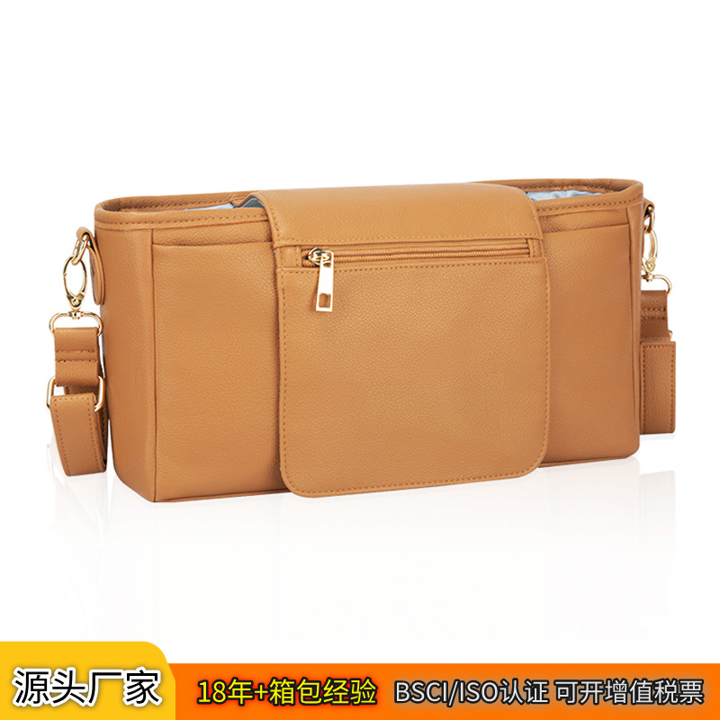 户外便携后挂式婴儿推车挂袋 BSCI工厂 PU妈咪包奶瓶置物挂袋