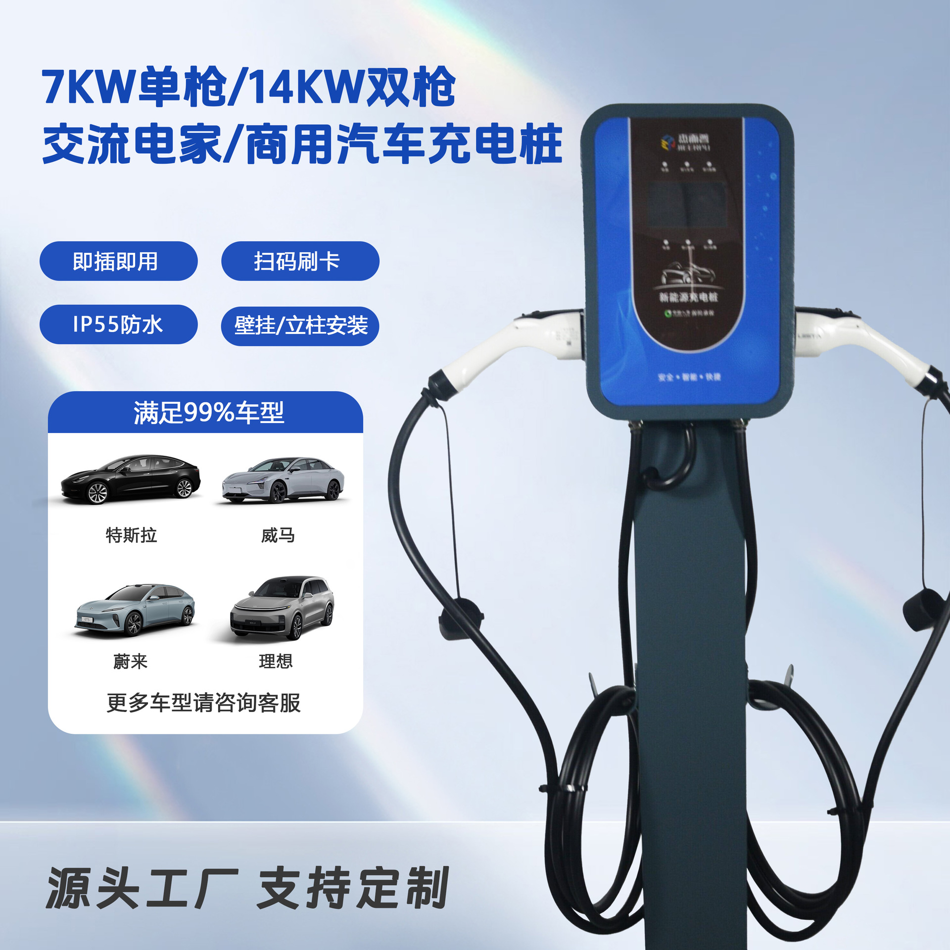 新能源充电桩7KW家用电动汽车充电枪14KW双枪商用交流快充充电站