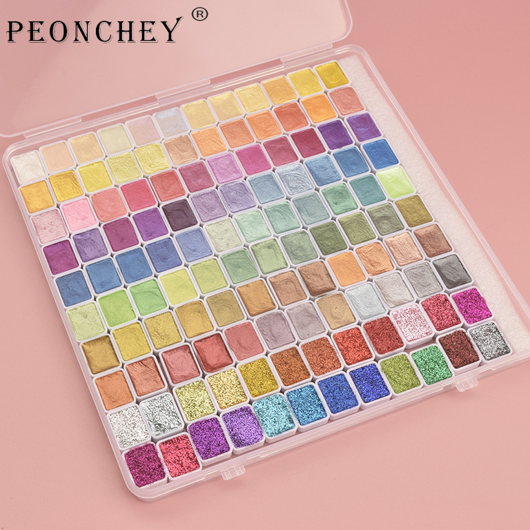 颜料套装厂家批发50 72 90 168色便携式珠光美甲固体水彩颜料批发
