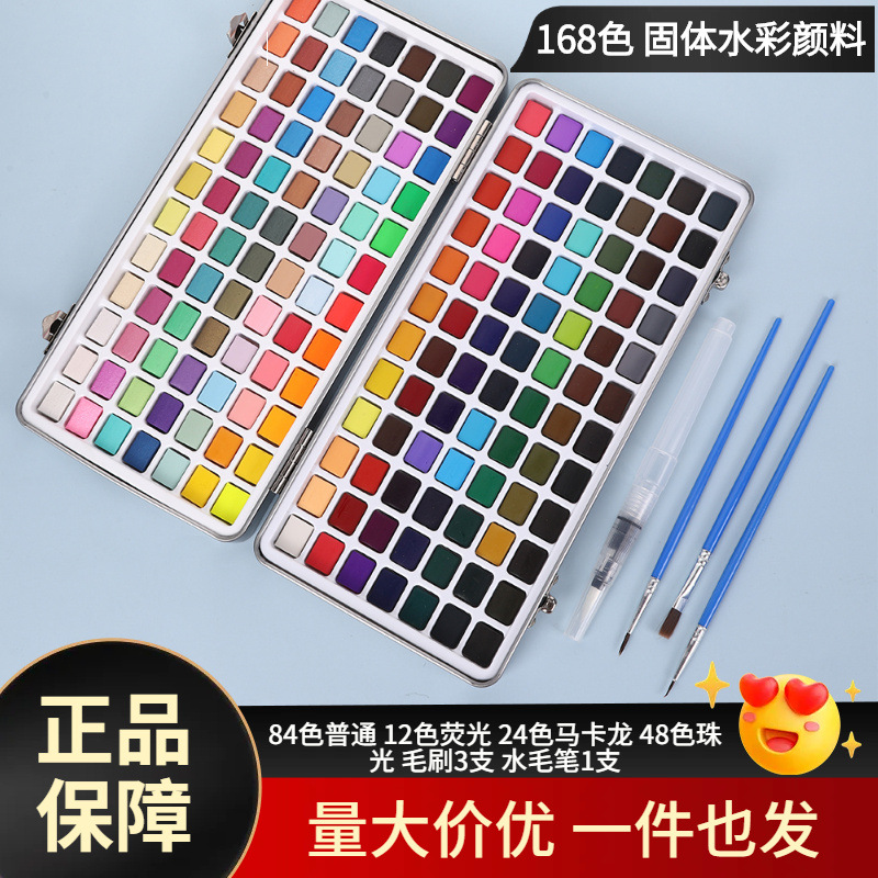 128 168色固体水彩颜料套装美术用品珠光色荧光色糖果色水彩绘画