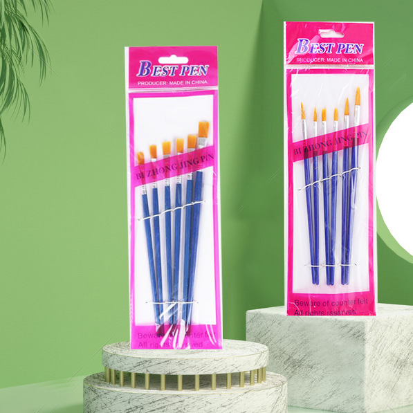 跨境平头油画笔套装6支画笔套装尼龙毛蓝杆儿童美术绘画笔刷577-6