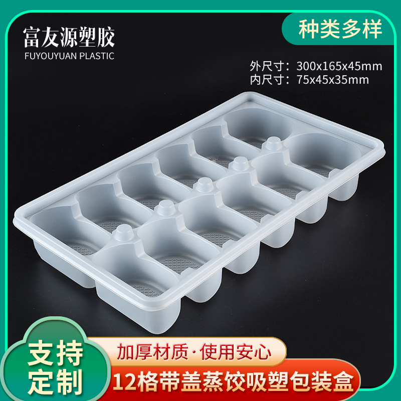 12格带盖蒸饺吸塑包装盒一次性PP速冻蒸饺托盒商用蒸饺速冻打包盒