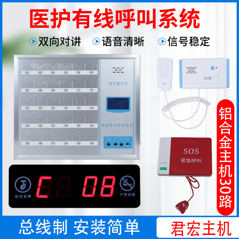 可出方案量大价优!君宏医院养老院医护有线对讲呼叫器对讲机50路