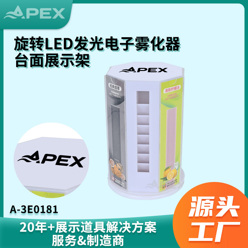 360°旋转LED发光展示架 电子雾化器台面展示架 8边形创意陈列架