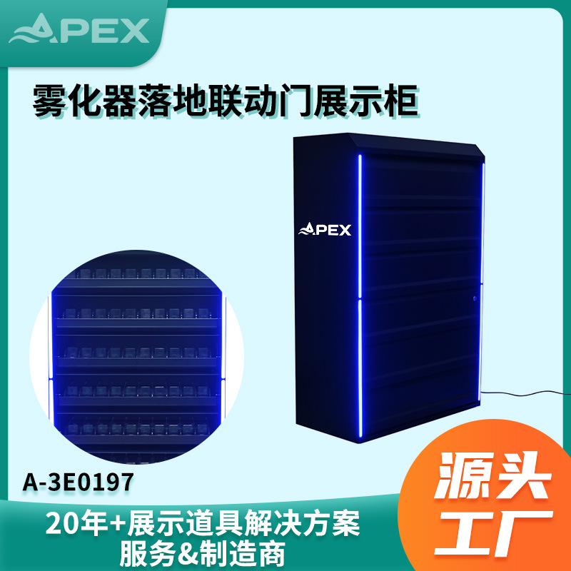 金属+PVC材质展示柜 电子雾化器落地联动门展示柜 LED发光展示柜