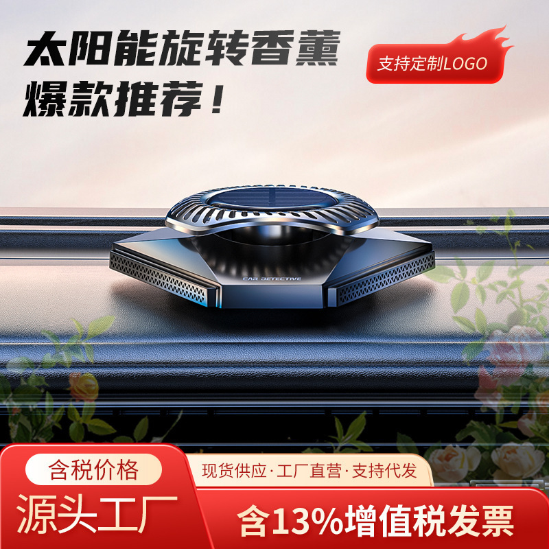 工厂供应车载太阳能旋转香薰香水汽车号码牌车内饰品摆件车用商务