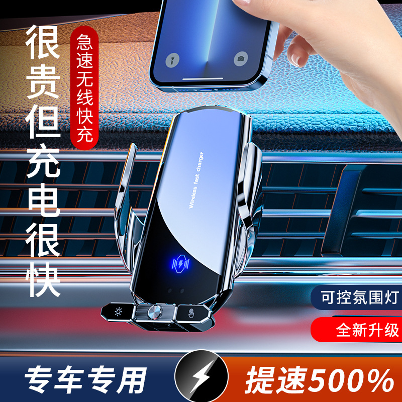 源头工厂车载手机支架红外自动开合15W无线充彩色LOGO汽车用品