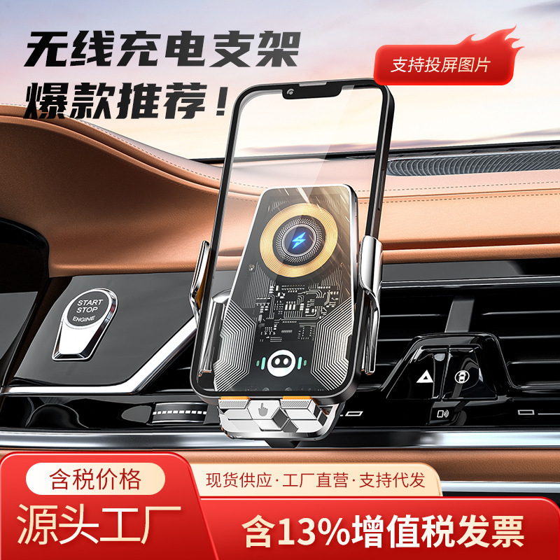 2025跨境爆款智能车载无线充电出风口手机支架车型通用导航支撑架