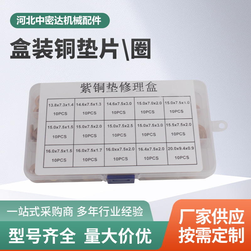 厂家汽车配件现货新款铜垫圈铜垫片盒装铜垫平垫片气缸密封批发