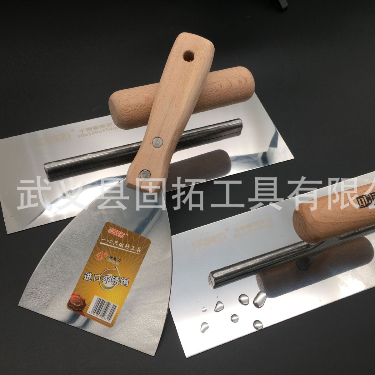 固拓不锈钢泥板 木柄抹子 硅藻泥刀收光刀 不锈钢灰池